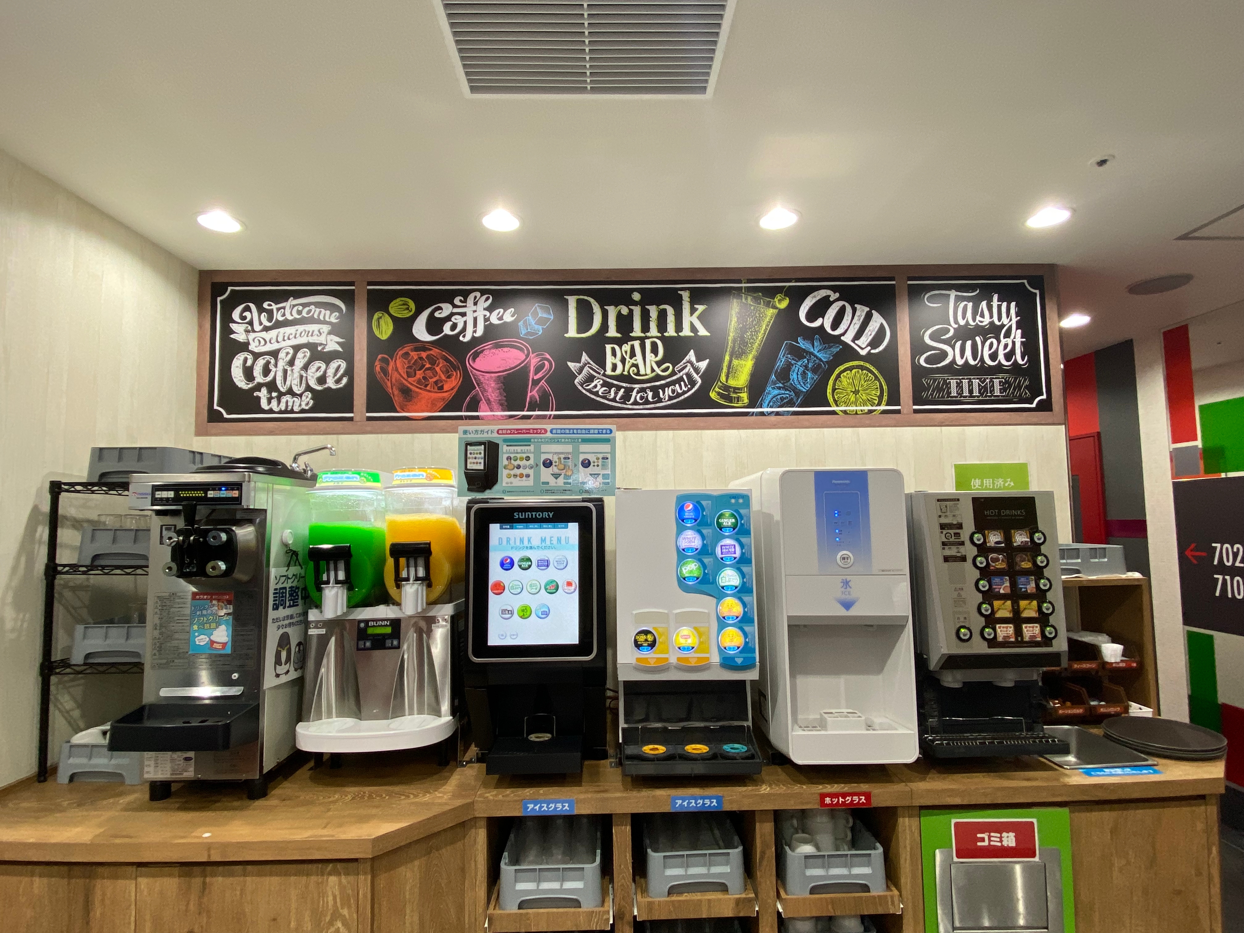 소프트 드링크바를 이용하려면 750엔을 더 지불해야 합니다.
