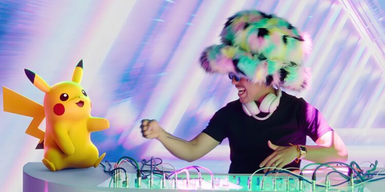 피카츄가 EDM 음악에 맞추어 춤을 추는 모습을